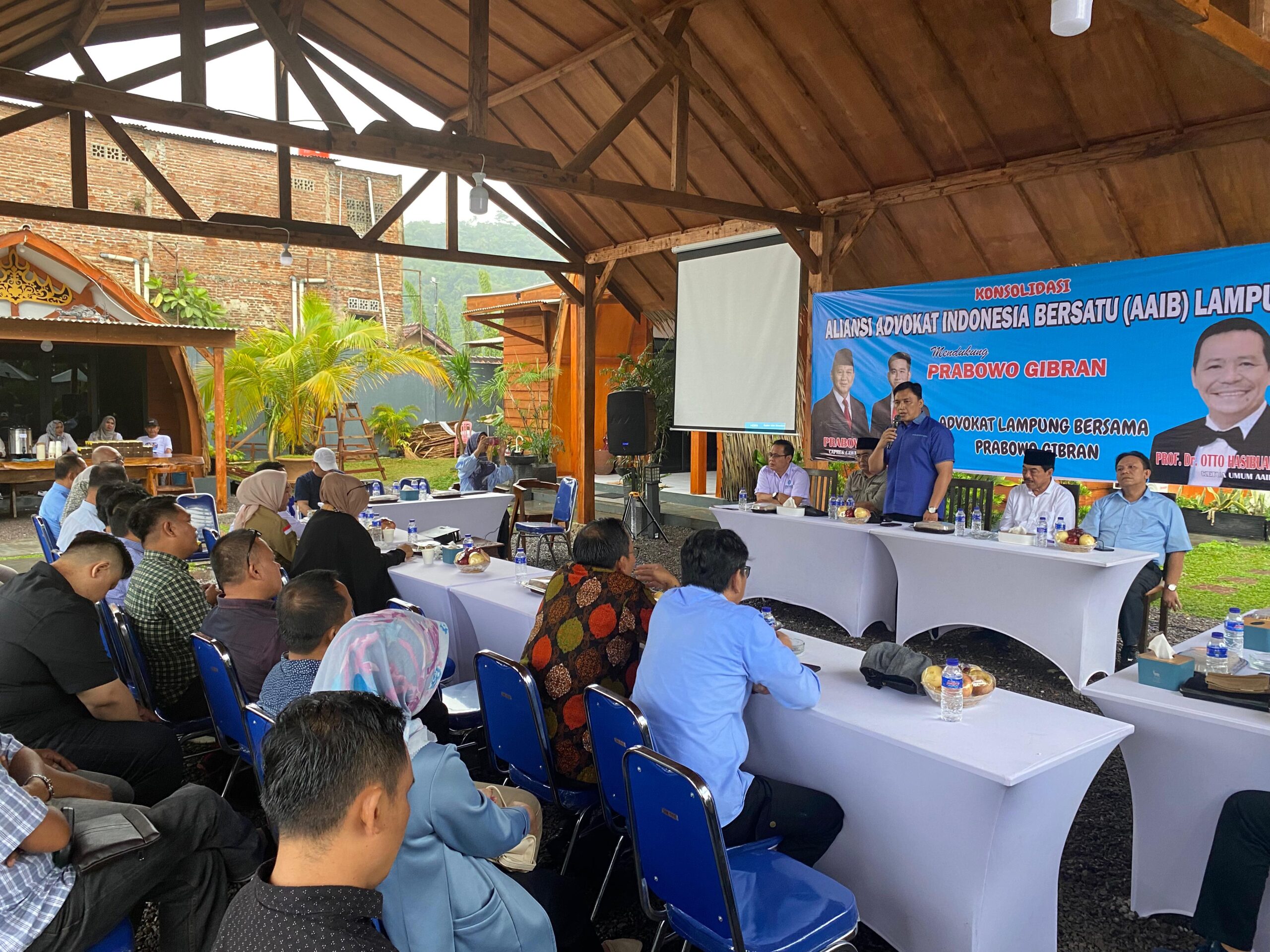 Penanggung Jawab Wilayah AAIB Lampung, Bambang Handoko, menekankan pentingnya mendukung Prabowo-Gibran untuk menjaga marwah profesi advokat. Sambutan ini menggarisbawahi kesatuan dan harapan untuk meraih kemenangan.