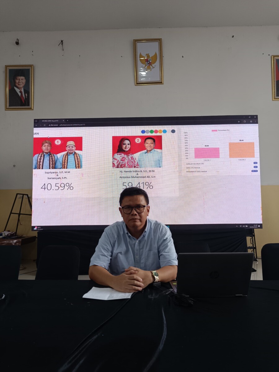 “Data sementara yang kami terima dari 87 persen TPS menunjukkan bahwa pasangan Nanda–Anton tetap unggul dengan perolehan 59,19 persen suara,” ujar Fauzi Heri di Pesawaran, Sabtu (24/5/2025).