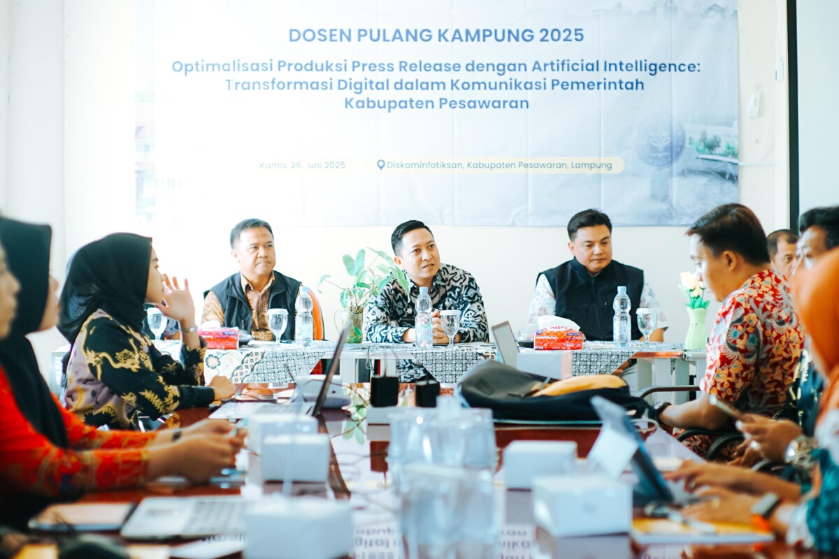DISWAYLAMPUNG.PESAWARAN – Pemerintah Kabupaten Pesawaran bekerja sama dengan Insitut Pertanian Bogor (IPB) University berkolaborasi dalam peningkatkan kualitas layanan informasi publik dengan menyelenggarakan pelatihan bertajuk “Optimalisasi Produksi Press Release dengan Artificial Intelligence: Transformasi Digital dalam Komunikasi Pemerintah Kabupaten Pesawaran”. Kegiatan ini digelar pada Kamis, (26/6/2025) di Aula Lantai 3 Dinas Perpustakaan dan Kearsipan Kabupaten Pesawaran.