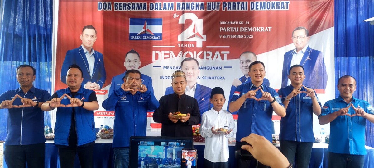 DISWAYLAMPUNG.ID – Dewan Pimpinan Cabang (DPC) Partai Demokrat Kabupaten Pesawaran menggelar Doa bersama untuk keselamatan negeri, sekaligus membagiakan sembako serta santunan terhadap anak yatim dan ratusan kaum duafa dalam rangka Hari Ulang Tahun (HUT) Ke 24 Partai Demokrat, Selasa (9/9/2025)