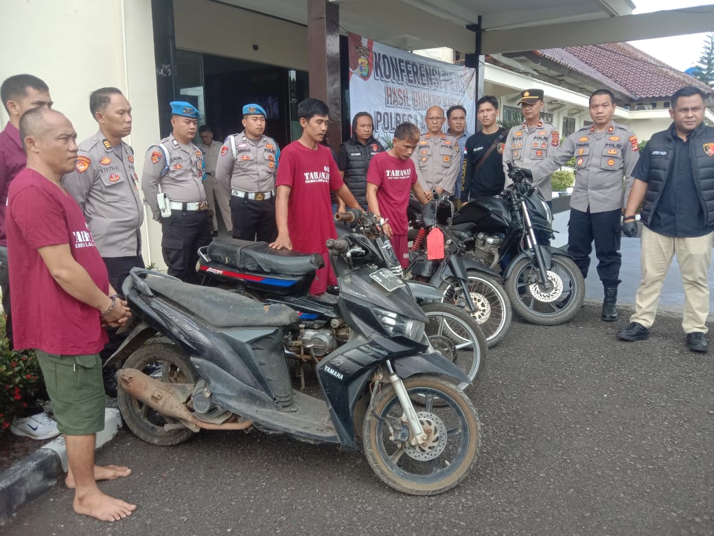 DiswayLampung.id -Sebanyak kendaraan bermotor berbagai merek diamankan petugas Reskrim polres Lampung Utara. Empat kendaraan motor yang diamankan tersebut didapatkan dari tangan 3 orang tersangka.