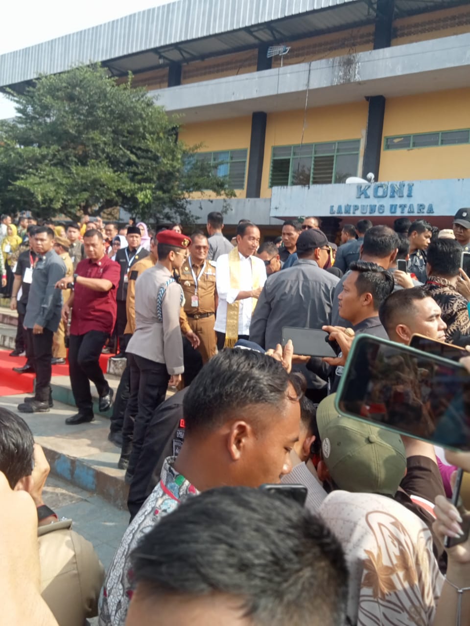 Diswaylampung.id – Presiden Republik indonesia Joko Widodo (Jokowi) tiba di stadion Sukung Kotabumi sekira pukul 14.45 WIB. dalam rangka melakukan kunjungan kerja(kunker) ke Kabupaten Lampung Utara, Kamis (11/07/2024).