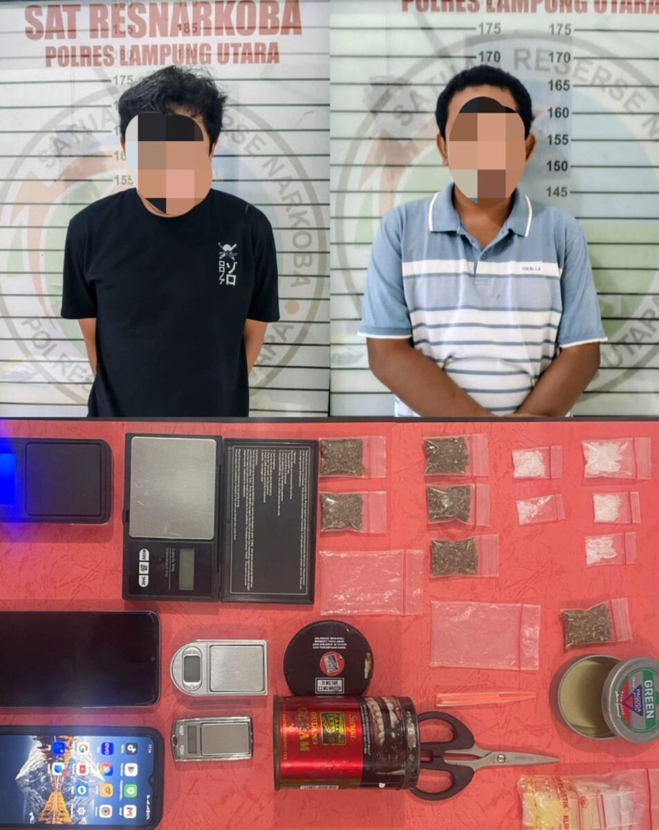 Saat ini kedua tersangka beserta barang bukti telah diamankan di Satresnarkoba Polres Lampung Utara guna menjalani proses pemeriksaan dan penyidikan lebih lanjut.