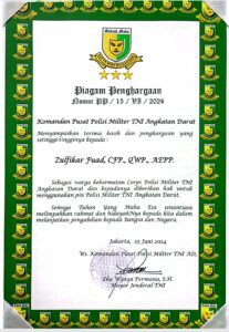 Penghargaan sebagai Warga Kehormatan CPM diberikan langsung oleh Ws. Komandan Pusat Polisi Militer Angkatan Darat (Ws. Danpuspomad) Mayjen TNI Eka Wijaya Permana, S.H. ditandai dengan penyematan PIN Gajah Mada dan penyerahan Piagam Penghargaan Warga Kehormatan CPM kepada Zulfikar Fuad dalam Apel Corps Peringatan Hari Ulang Tahun CPM ke-78 di Lapangan Sugiri Pusdikpom Puspomad, Cimahi, Jawa Barat, Selasa (25/6/2024).