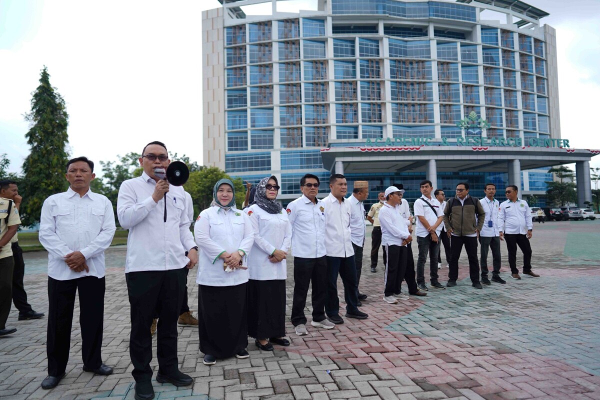 Wakil Rektor (WR) III Bidang Kemahasiswaan dan Kerja Sama Prof. Dr. H. Idrus Ruslan, M.Ag., mewakili Rektor Prof. H. Wan Jamaluddin Z., M.Ag., Ph.D. yang sedang berada di luar kota, memberikan arahan kepada mahasiswa yang akan turun ke titik aksi di Kantor DPRD Provinsi Lampung, Teluk Betung Selatan, Senin (1/9/2025) pagi. Arahan tersebut disampaikan di halaman Rektorat Gedung Academic & Research Center UIN RIL.