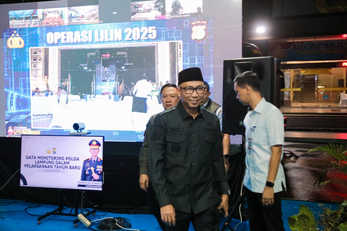 DISWAYLAMPUNG.ID — Gubernur Lampung Rahmat Mirzani Djausal bersama unsur Forkopimda Provinsi Lampung memantau pengamanan malam pergantian Tahun Baru 2026 di Bandarlampung, Rabu (31/12/2025).