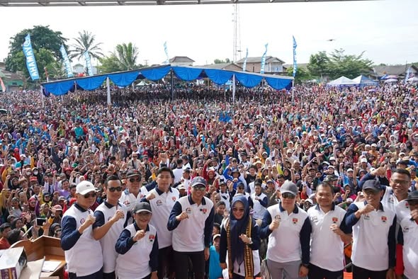 DISWAYLAMPUNG.ID – Dalam rangka HUT Ke-17 Kabupaten Mesuji, 15 ribu masyarakat Mesuji bersama Gubernur Lampung, Rahmat Mirzani Djausal, melakukan jalan sehat di Lapangan Brabasan, Kecamatan Tanjung Raya, Kabupaten Mesuji, Minggu (23/11/2025). Acara ini mengusung tema “Pangan Melimpah, Infrastruktur Mantap, Mesuji Maju”.