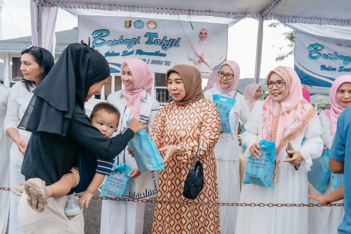 Seperti hari-hari sebelumnya, pembagian takjil dilakukan menjelang waktu berbuka kepada pengendara dan warga yang melintas di kawasan tersebut. Ibu-ibu Dharma Wanita tampak membagikan paket takjil secara langsung dengan tertib, disambut antusias oleh masyarakat.